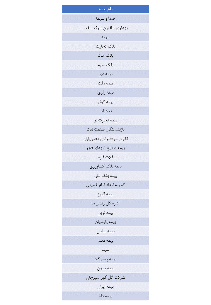 « لیست بیمه های طرف قرارداد بیمارستان »
